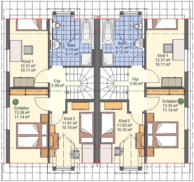 | Kind 1 | 12,31 m² | 10,11 m² |