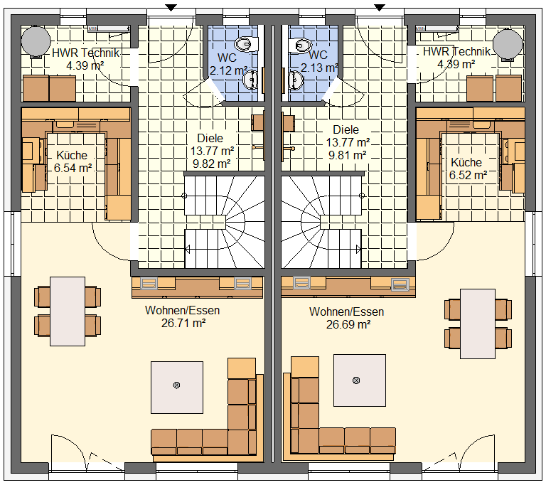 Erdgeschoss Doppelhaus Typ 112 Optimal mit Bodenplatte