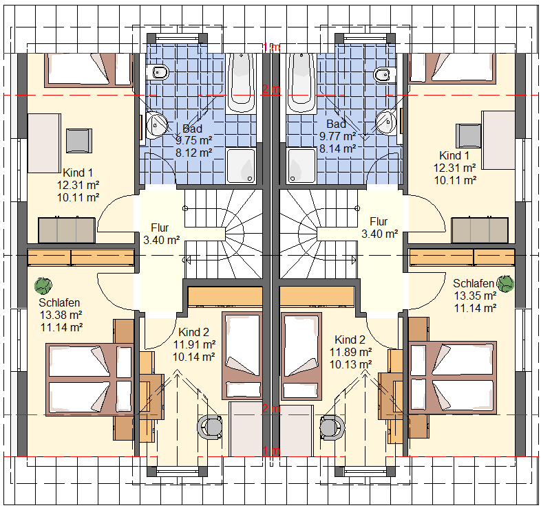 Obergeschoss Doppelhaus Typ 112 Optimal mit Bodenplatte