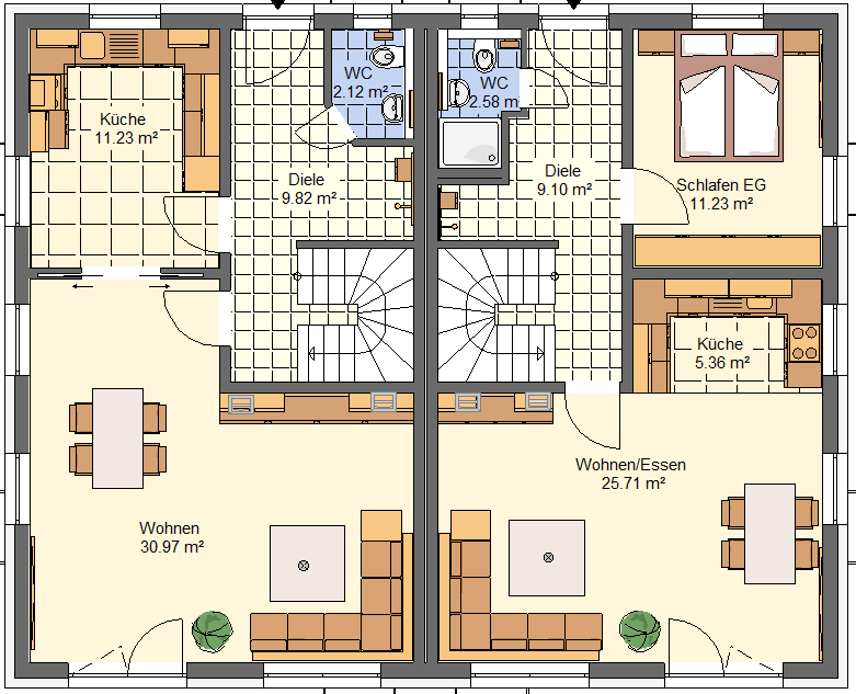 Sie befinden sich hier: Startseite » Häuser » Doppelhäuser » DH Typ Janic 38° DN mit Keller