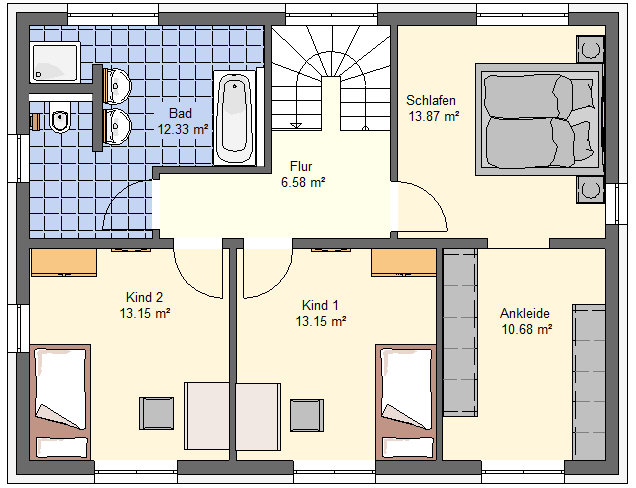 Hausbreite und Hauslänge 12,82 m x 8,57 m