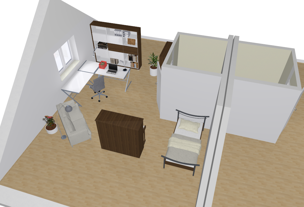 Im Obergeschoss, ist viel Platz und Stellfläche für Mobiliar.