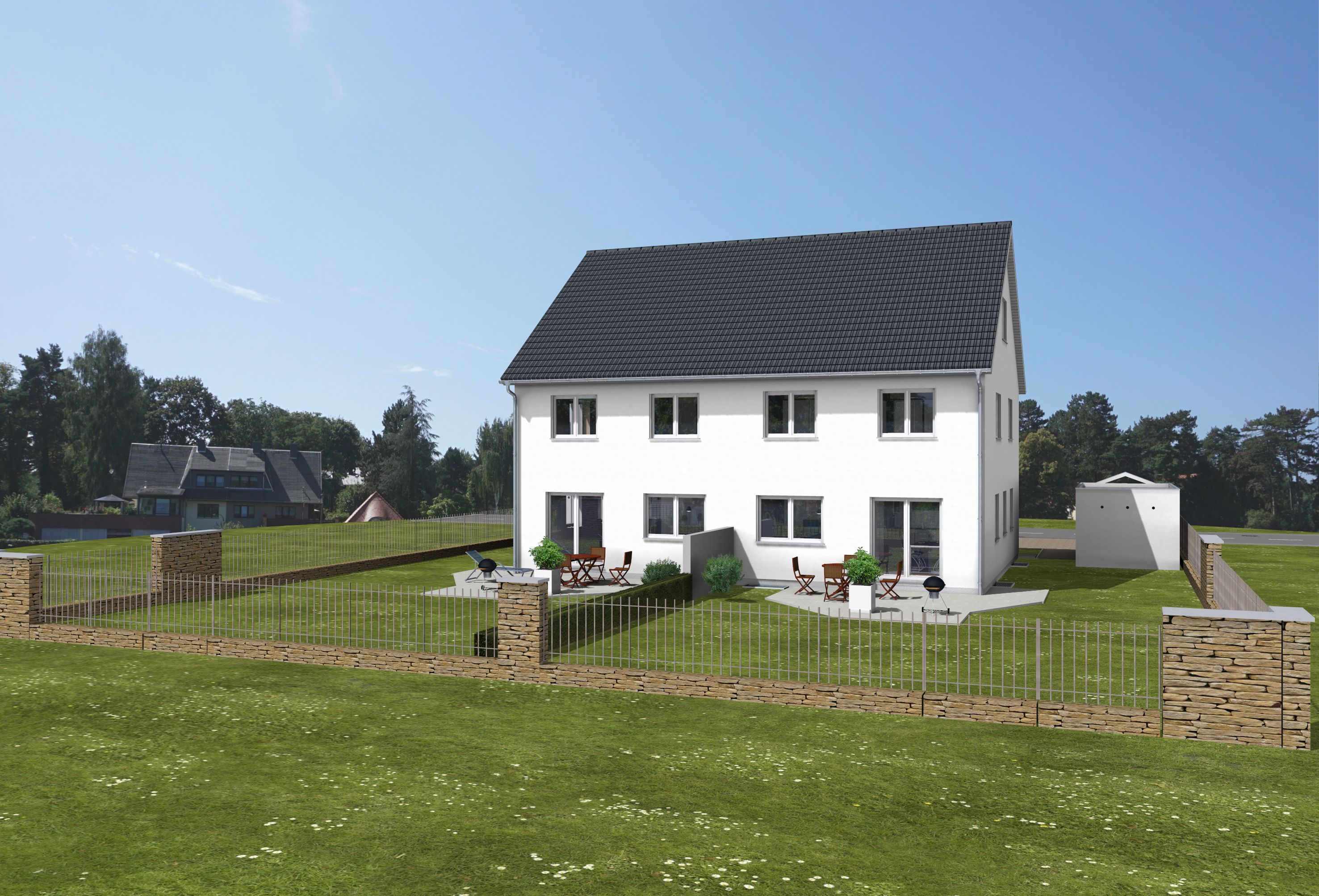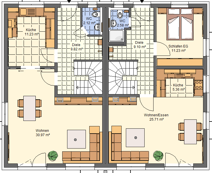 Wir bauen in bewährter Massivbauweise Stein auf Stein mit Keller Doppelhaus Typ Janic schönem Satteldach zum Festpreis!