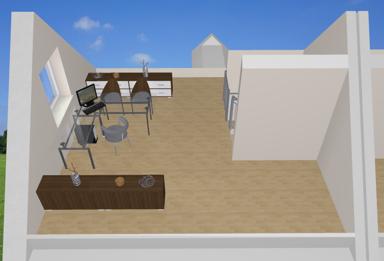 Im Obergeschoss, ist viel Platz und Stellfläche für Mobiliar.