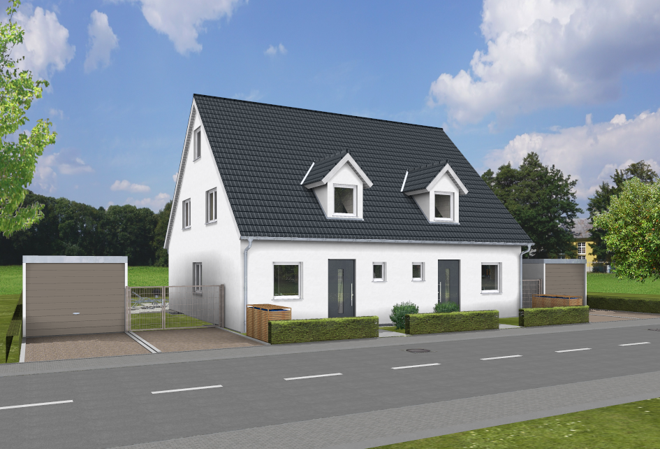 Wir bauen in bewährter Massivbauweise Stein auf Stein mit Keller Doppelhaus Typ 112 Junges Wohnen mit schönem Satteldach zum Festpreis!